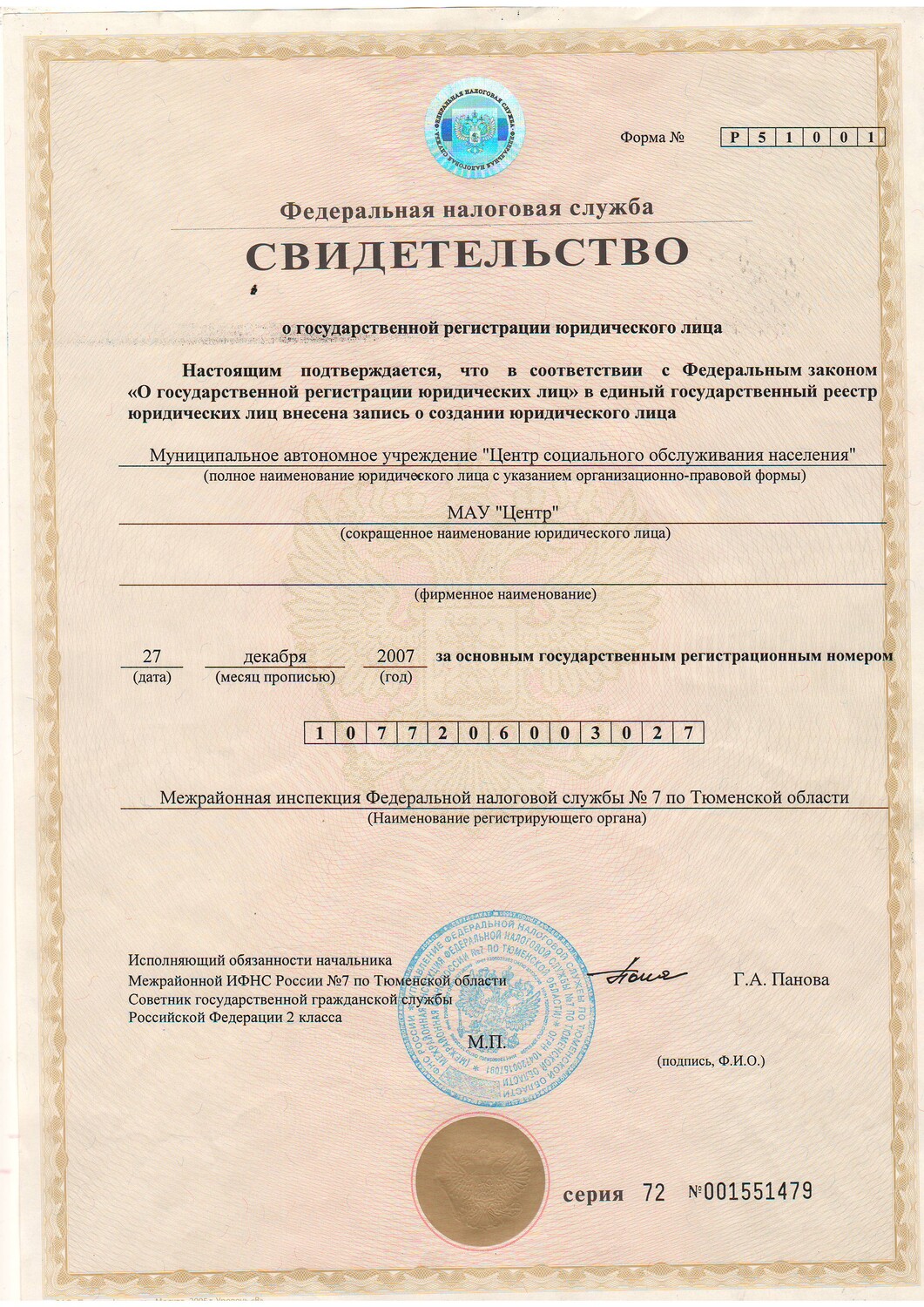 Свидетельство о государственной регистрации